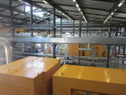 We stuck our head into the room with the turbine. Quiet, clean. The steam that you see in the picture is all the “pollution”. Amazing.