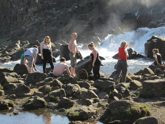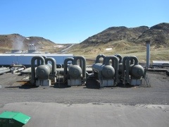 Then we drove through to a GEOTHERMAL plant. This takes hot water (300 degree C–it is still liquid due to the pressure down there) lets it turn to steam as the pressure is removed. The steam turns theses huge turbines and makes 3000 megawatts of electricity. Then before they pump it back into the earth they run it next to fresh cold water (which they have glaciers of)..and that warm water comes to the city and heats houses and is hot water.