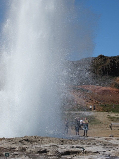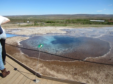 Not surprisingly, just a little way up the hill was the first GEYSIR. That was this one’s name– from this it became a common word. These ponds are actually bubbling at 212 degrees– notice the minimal barriers.