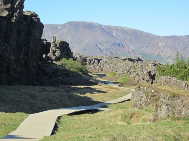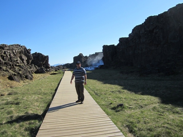 Then on to the Continental Rift. We are walking between two tectonic plates that are drifting apart 0.33 inches a year. The middle part sinks, the walls used to meet. Amazing to me.