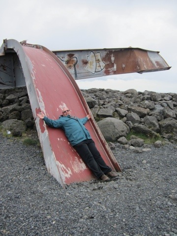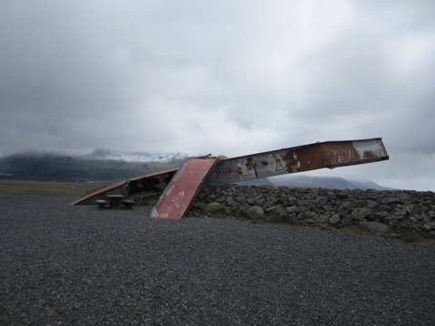Then we drove through the Sandur– which is what is left when glaciers flood an area–mostly pebbles. The last big flood here after a volcano melted the inside of a glacier and then all the water popped out at once was in 1996. This shows a bridge strut it is partially buried in the glacier debris.