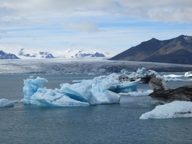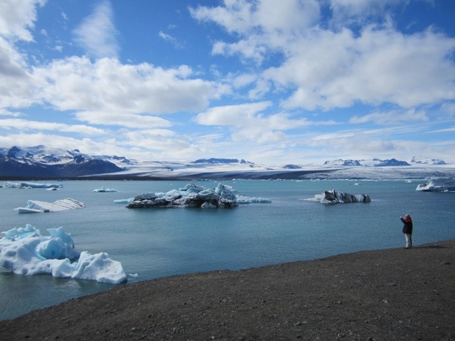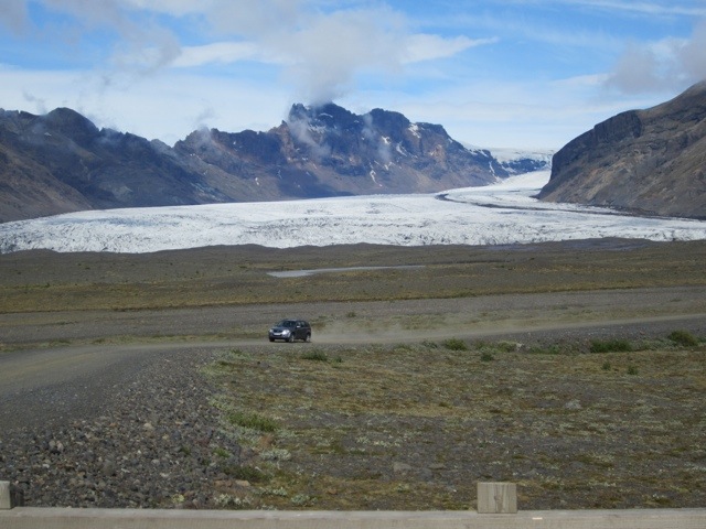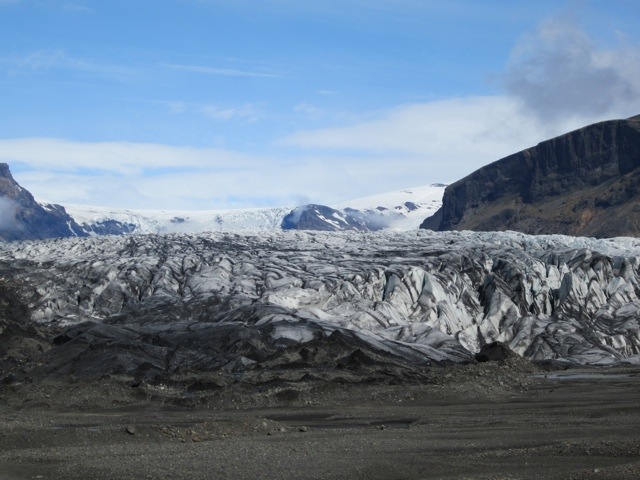 Well we got to the glaciers and the sun came out and the were all you can think of. Huge and quiet, yet menacing in their own way. These are tongues of Vatnajokull–the largest icecap outside of the poles.