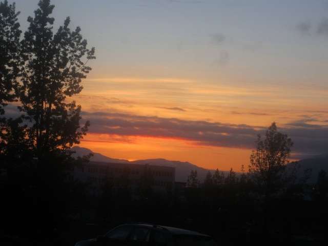 And the lovely waitress who, like most of our waitresses here, are University students from Reyjavik working a summer job, poured a REALLY big glass of wine. But this so reminds both of us of Sardinea, and the mussels were our favorite food there…and …here I am now…