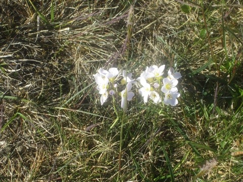 We are both amazed at the hardy flowers that grow here all by themselves. Here is some grass/path with a close up of the flower right after.