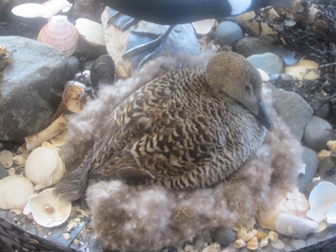 Back here to a museum showing us how they make Eiderdown—from the little duck nests