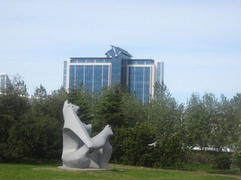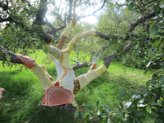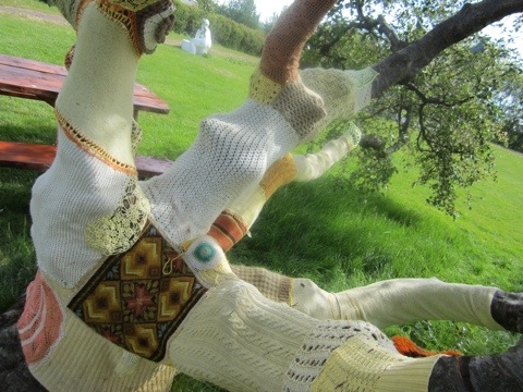 There was a tree in his sculpture garden that had been knitted. We have seen light poles and parking signs knitted in Berkeley, but I though this was pretty cool. And some sort of interesting artistic statement, maybe even feminist statement creating this in the middle of plaster and bronze.