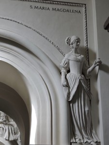 Though most of the statues have a Grecian look, the one below was make by the 17th century artist to look like his wife–who was named Maria Magdalena as well.