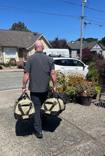 Good -bye PG. We will miss our friends and the ocean, but, honestly, NOT the fog that is coming your way. We are chillin’ in SFO. Arrived at 3 for an 7:30 flight.. For both of us that is better the running into traffic and losing our minds. Please note…just two duffle bags! (Well there is also a bright pink carry-on full of odd things for our Catamaran friends— two propellers, lights, plugs, Italian Salad Dressing and some electronics . We will trash the suitcase in Corsica.)