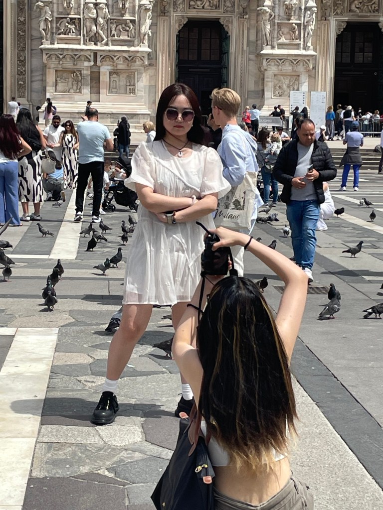 Best people-watching ever! The pigeon thing is odd… you buy some grain and put it in your hand and then, surprisingly, you are surrounded by pigeons! And your friend takes your picture.
