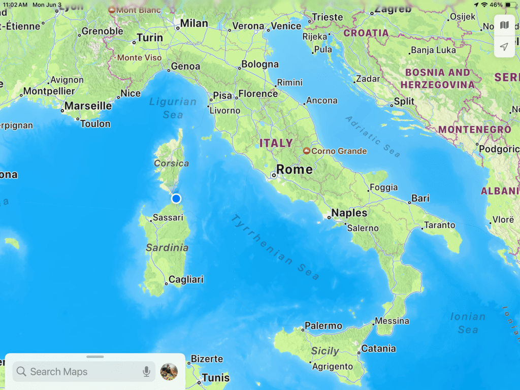 Tomorrow we are spending the morning getting about halfway down the coast of Sardinia and then Wendsday we are doing a 24 hour cross to Sicily.