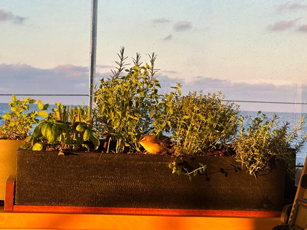 Max and I were sitting enjoying our view. We had made chicken tacos, but Steve was getting in a nap (he and Karen will switch off being up all night) so we were chilling and