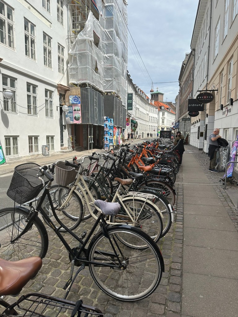 Interestingly, the most upscale area has managed to prohibit parking bikes on their sidewalks. (there just isn’t enough room😕)