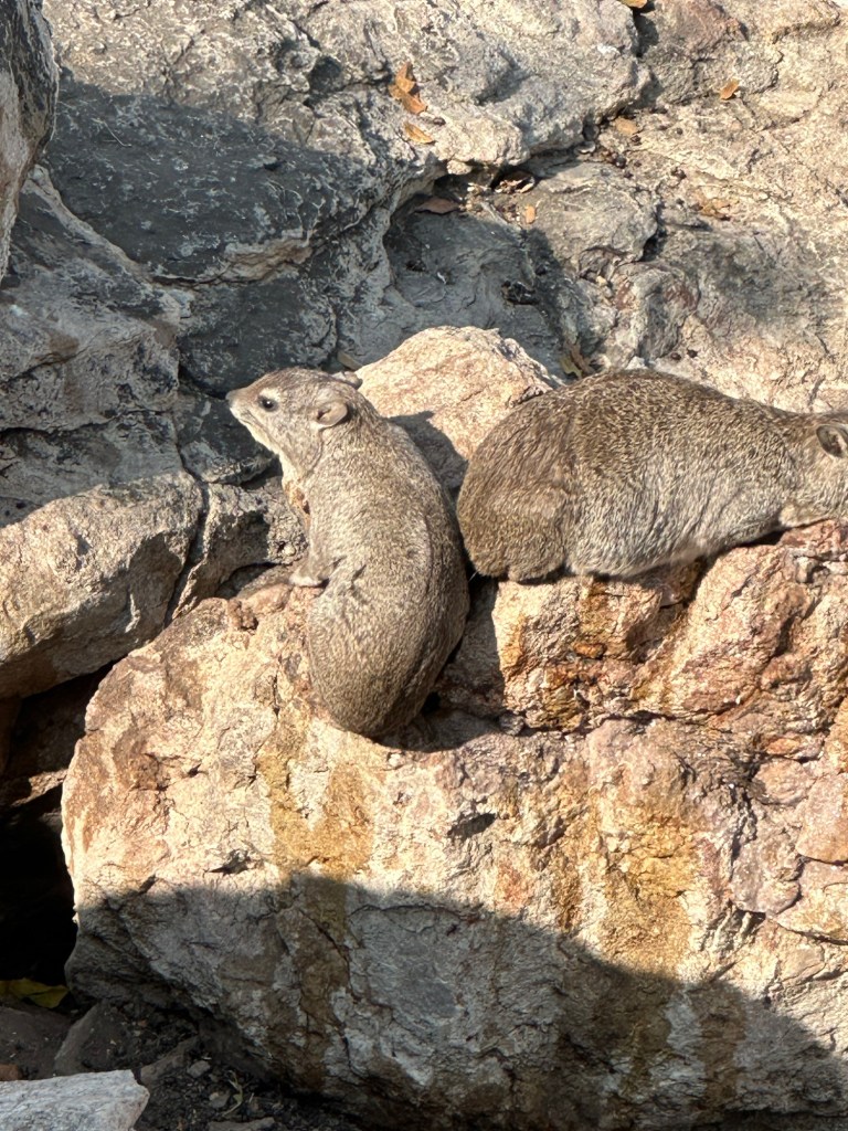 We saw giraffes, elephants , baboons, African quails, hippo, crocodiles, impalas, zebras, eagles,cool bright blue bird and little otter looking things that are actually related to elephants (rock hyraxes)