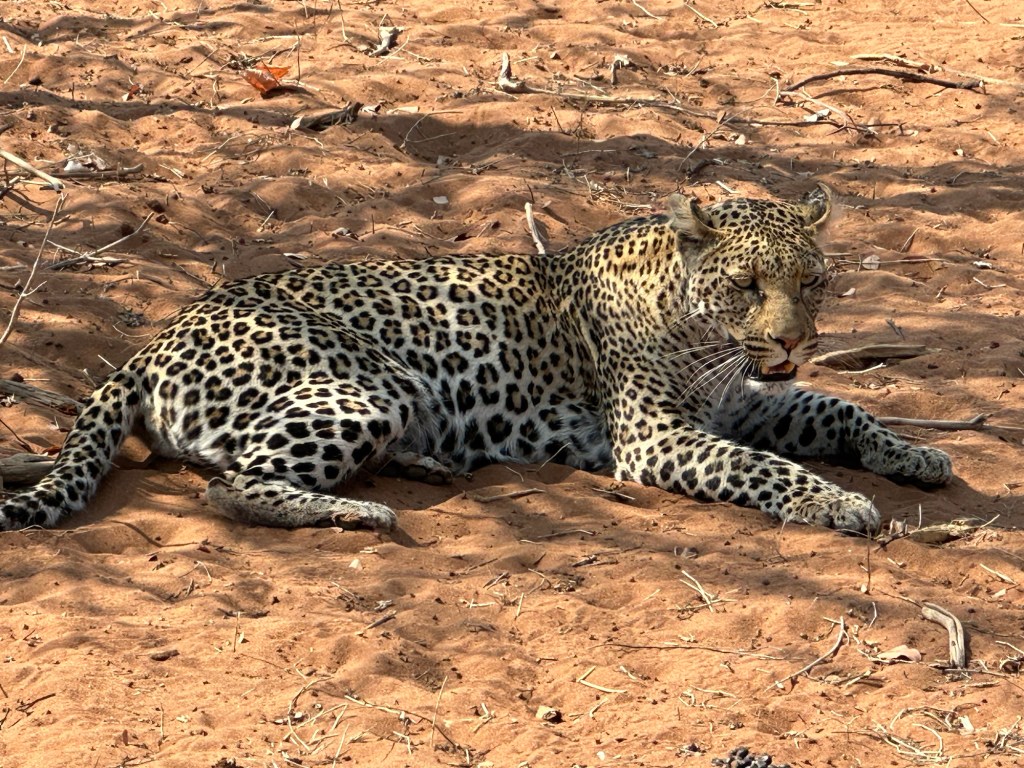 Then we were between this leopard and her hyena (dead).. she is snarling at us