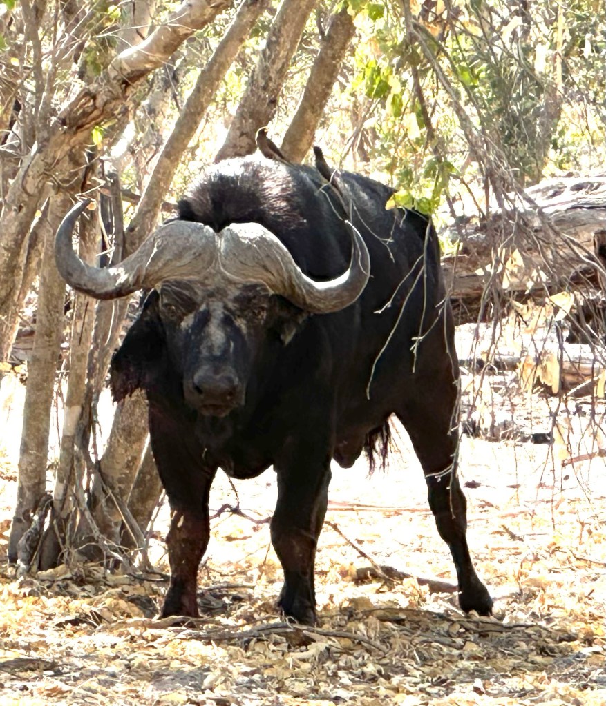 And up close with a Cape Buffalo. Our guide said these are one of the most aggressive animals here… so we did not stick around long!