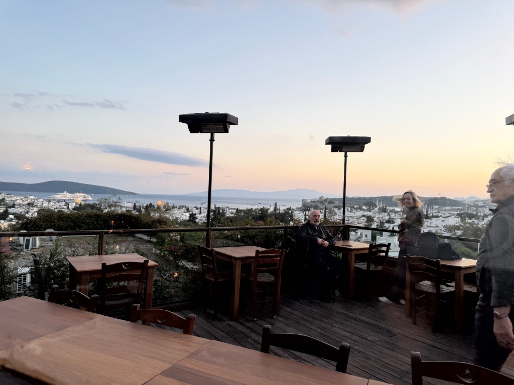 Lovely (roof top) restaurant here. We ate there Friday night. I had lamb shish (the BEST dish in Turkey) for lunch… but it was a late lunch. So I ordered just a bowl of mushroom pasta. I ate the morel mushrooms and just a bit of the pasta. When the waiter came over I laughingly said “This was delicious, I am just not very hungry. Can you just put it in the fridge and I will eat it tomorrow?”
