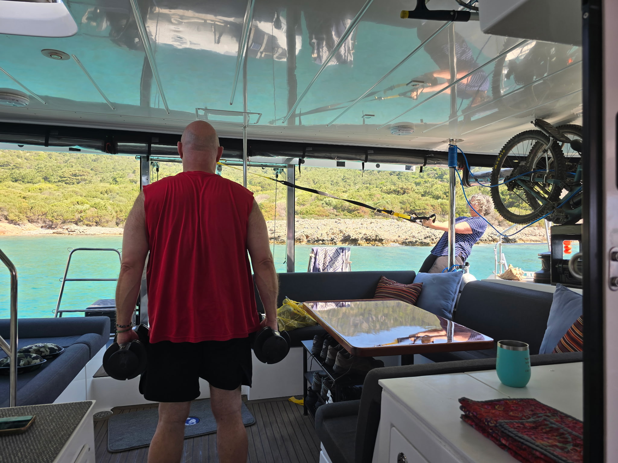 Today we are hanging in this cove. It is so beautiful and so peaceful! We are here an extra day because the stove stopped working. Luckily Steve can fix ANYTHING.. so we just chill and exercise and eat and nap!